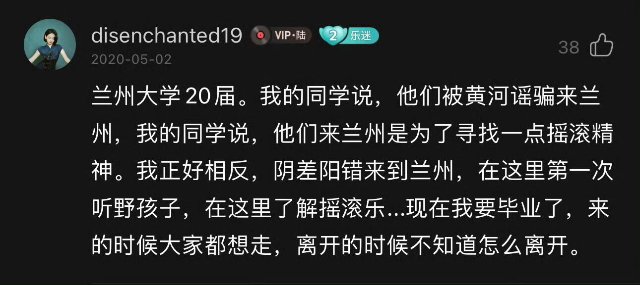 在野孩子的《黄河谣》下看到这条评论,突然想到野孩子是 20 年去的《乐队的夏天》,而如果那时候有人听了这首歌,去了兰州大学,今年正好要大学毕业了